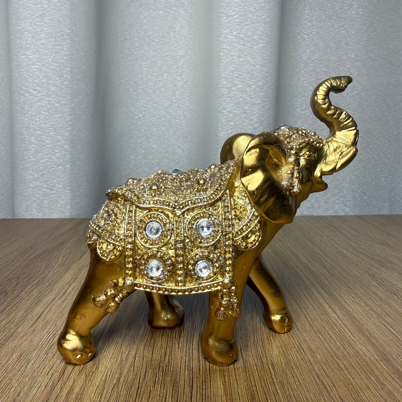 O elefante é o símbolo da imutabilidade e estabilidade, têm a capacidade de atrair sorte e é um poderoso símbolo de proteção, atraindo muita prosperidade e a paz. Tenha o Elefante Dourado em sua casa para atrair muita prosperidade.
