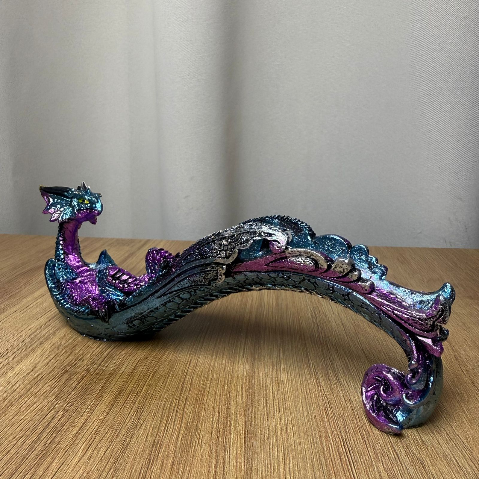 O Incensário Dragão é uma linda peça para queimar seus incensos cone com segurança, além de ser uma peça sofisticada que pode ser usada como objeto de decoração em sua casa ou empresa, deixe com muita personalidade sua casa ou trabalho!